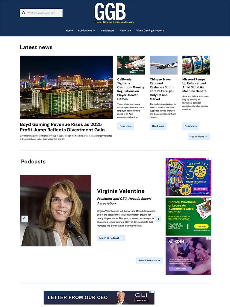 Global Gaming Business (GGB) is North America’s leading trade publication for the international casino industry. Reaching nearly 24,000 senior executives and industry stakeholders across both digital and print, GGB is the authoritative source for the land-based gaming sector.